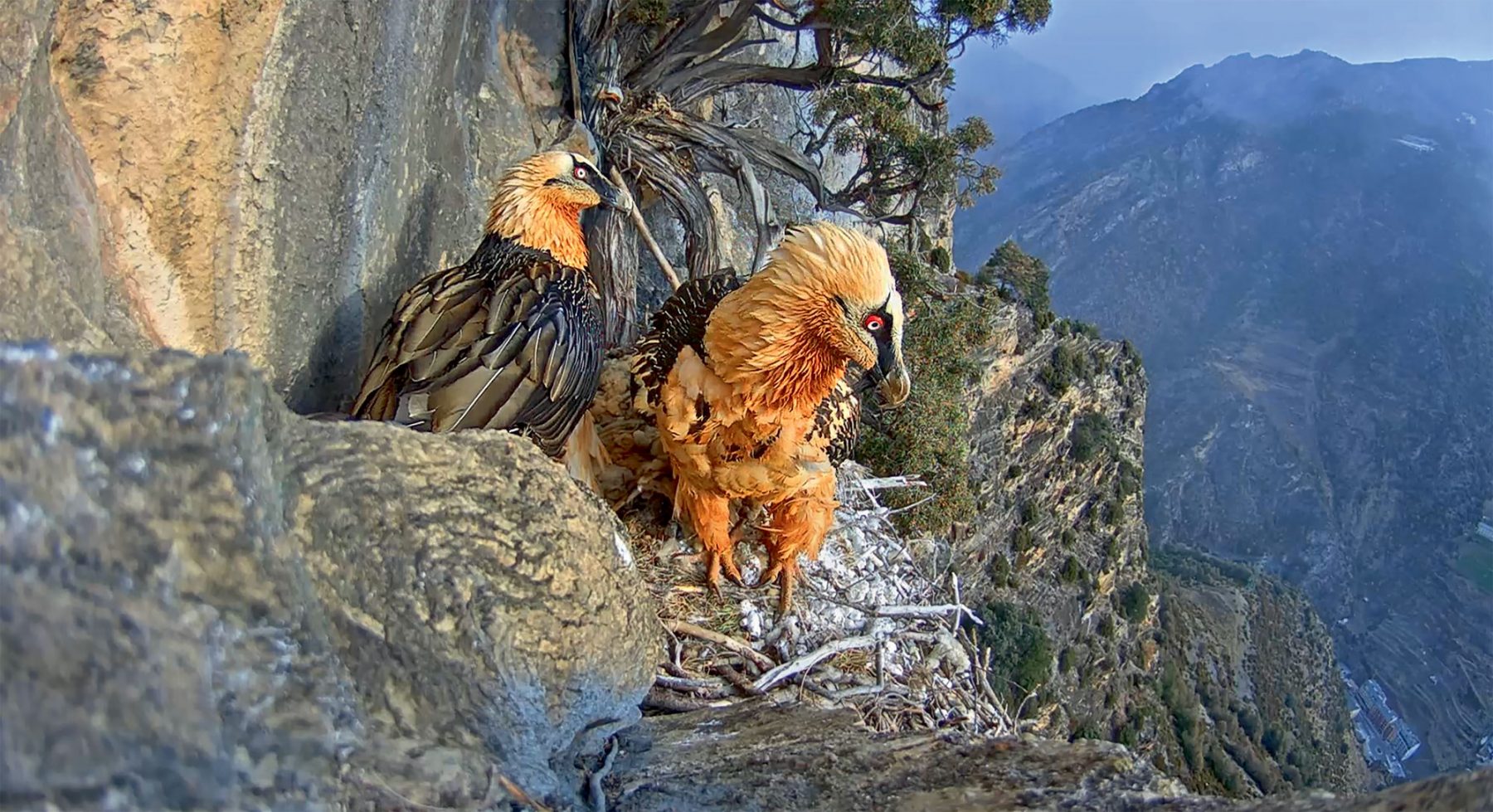Un couple de Gypaete y a pondu et couve ses oeufs.